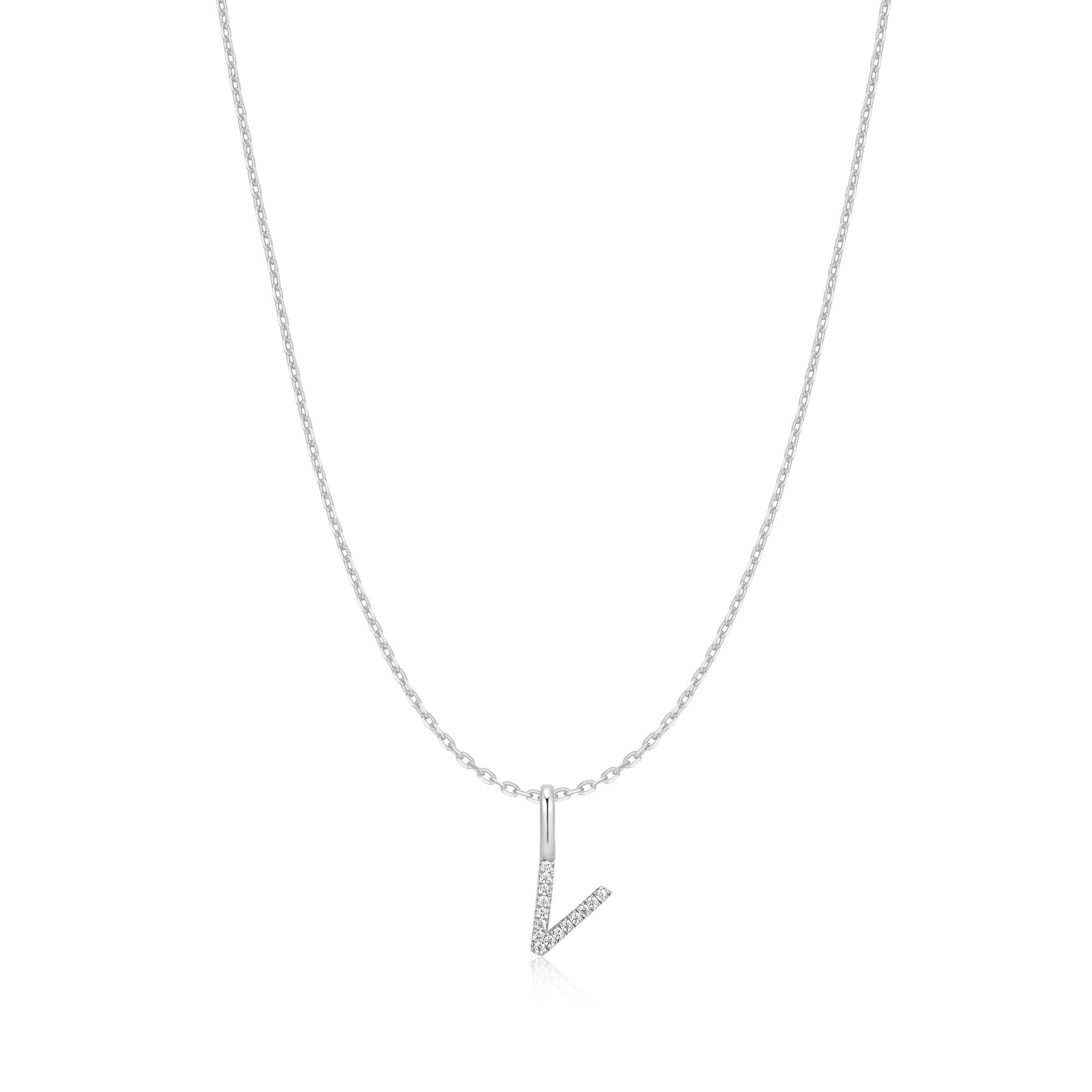 A delicate initial 'V' necklace, where the letter is outlined in a gentle, continuous sparkle. Intentional and personal, it’s designed for those who express themselves in thoughtful details—turning everyday moments into refined personal statements. Wear it close to your heart, layer it with delicate chains, or let it shine on its own. An emblem of authenticity or a thoughtful gift to celebrate life’s meaningful connections, with each initial from A to Z ready to tell its own story.