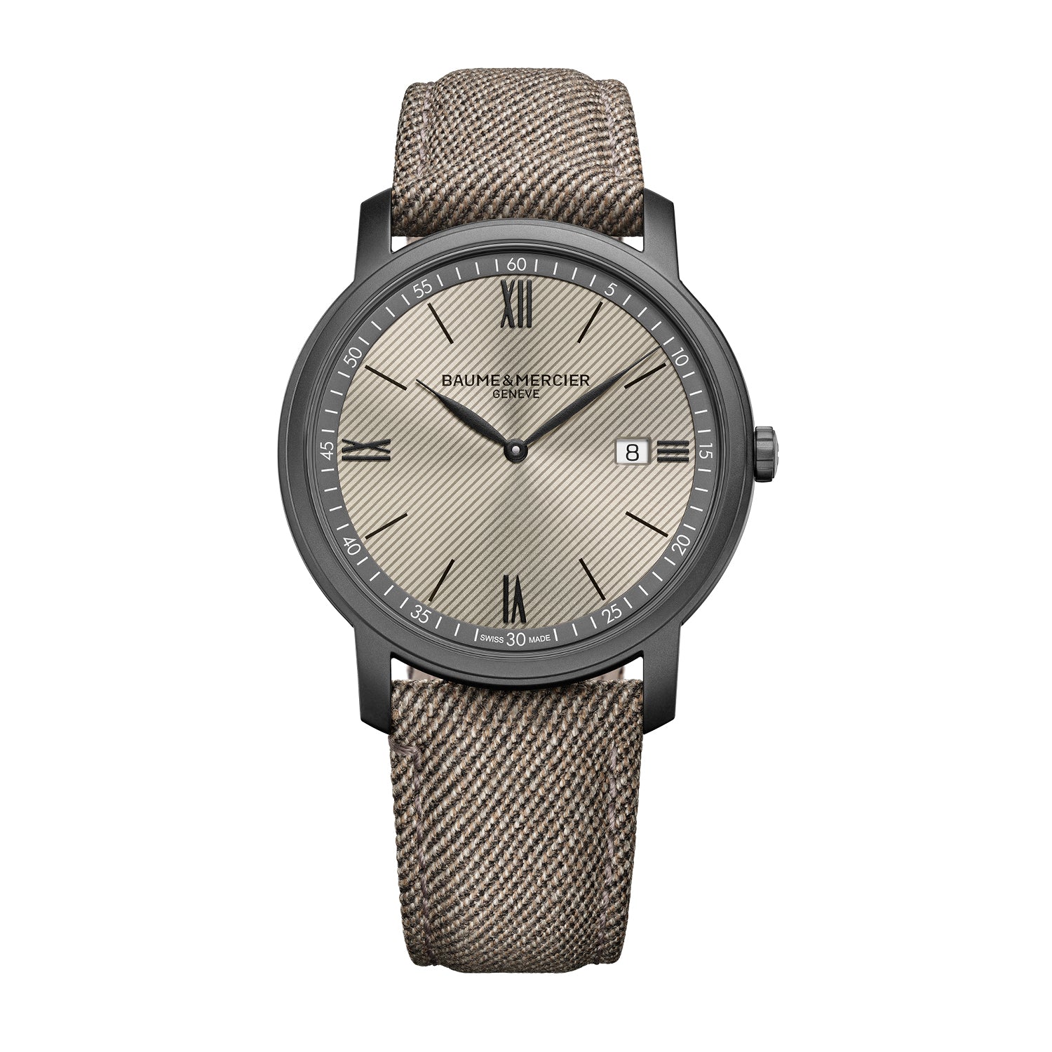 Embark on adventures with this watch powered by a quartz movement, offering 5 years of reliability. Encased in 42mm a sandblasted steel-ADLC case, its opaline sand dial exudes rugged elegance. Paired with an interchangeable sand fabric strap from Holland & Sherry, it's ready for any journey with its dependable lug system for easy strap changes.