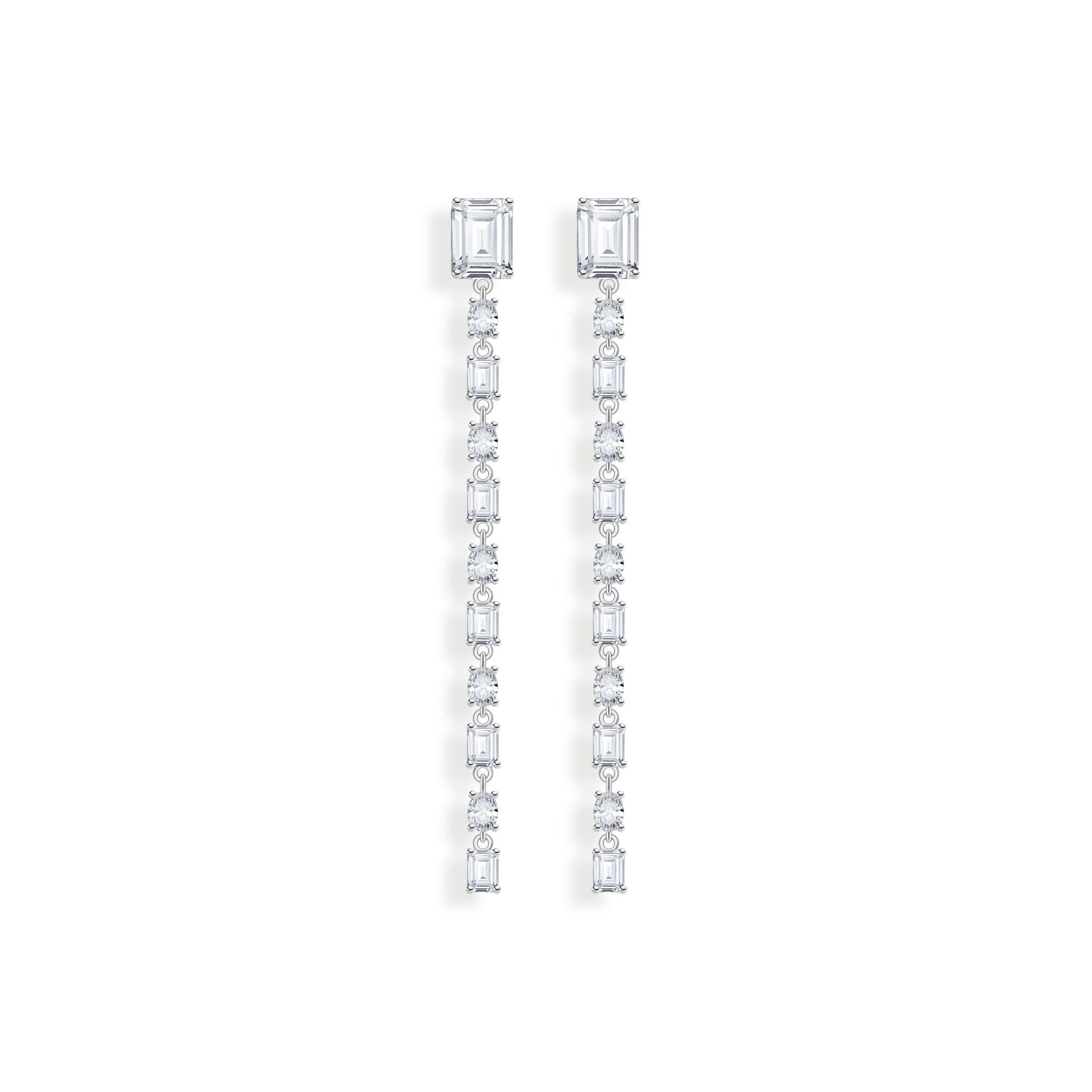 - Oval and rectangular white zirconia stones with sparkling facets fall elegantly from the ear studs