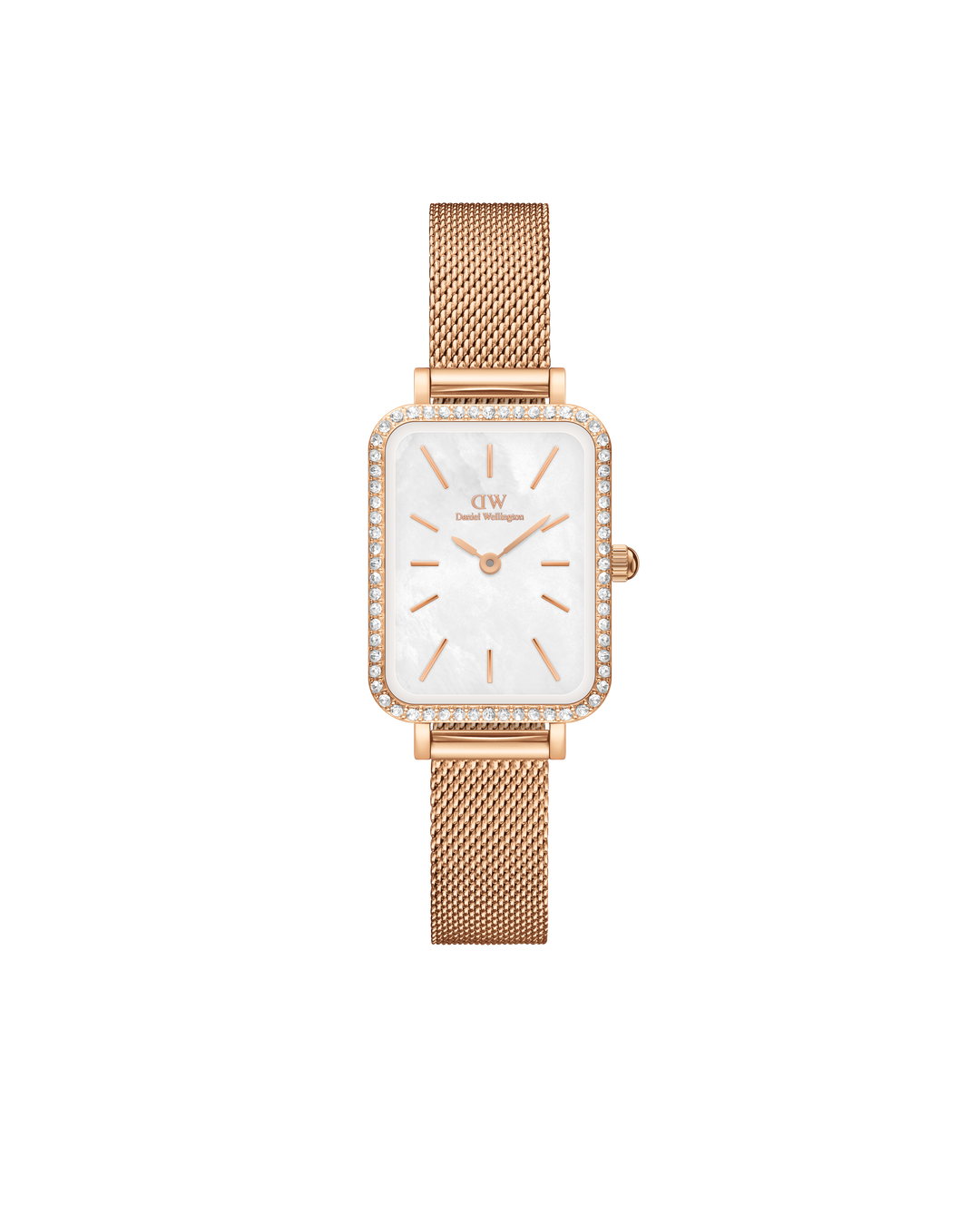 Daniel Wellington Quadro 20x26 Bezel Mesh White Mother of Pearl Rose Gold Watch