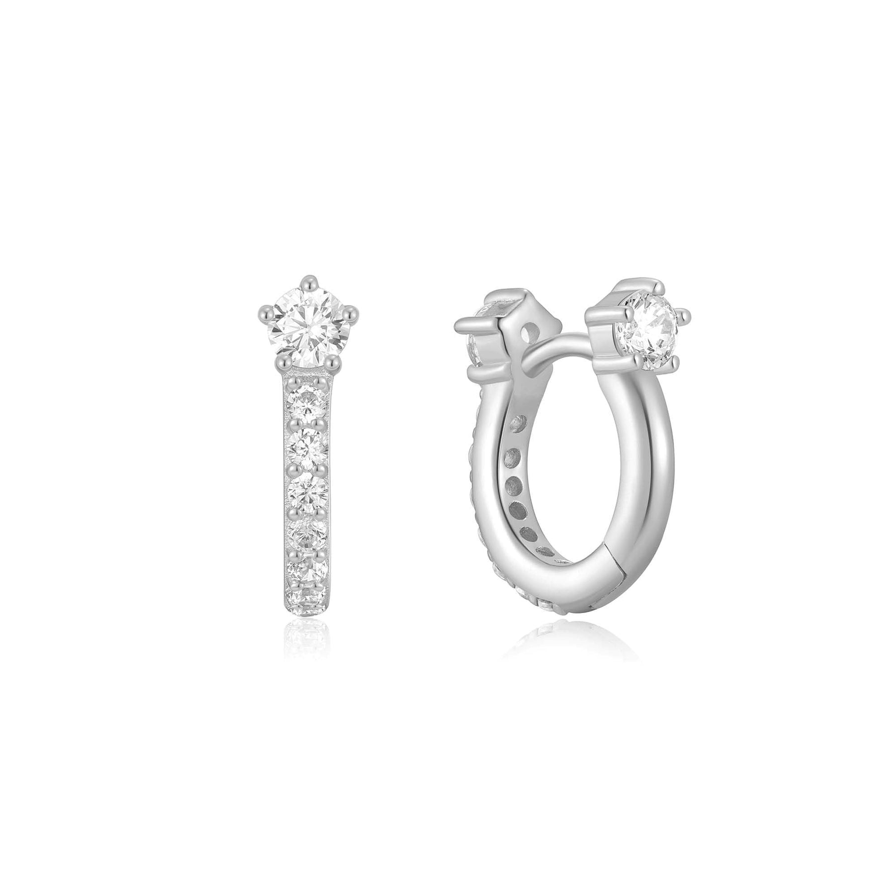 Silver Sparkling Pave Huggie Hoop Earrings