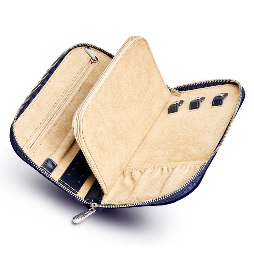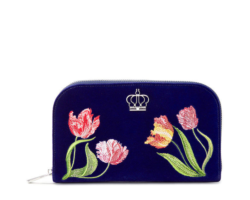 Royal Asscher Diamond Company mark their 170 year anniversary in 2024 with a WOLF collaboration as we celebrate our 190th. Jewellery cases feature elaborate tulip embroidery on deep blue velvet. LusterLoc™ linings look after diamonds and your treasures perfectly. The Jewellery Portfolio features deep blue velvet exterior with elaborate tulip embroidered exterior, multiple storage compartments for rings, earrings and necklaces to organise your jewellery in style. Includes LusterLoc™ anti-tarnish lining and silver finish zip and details.