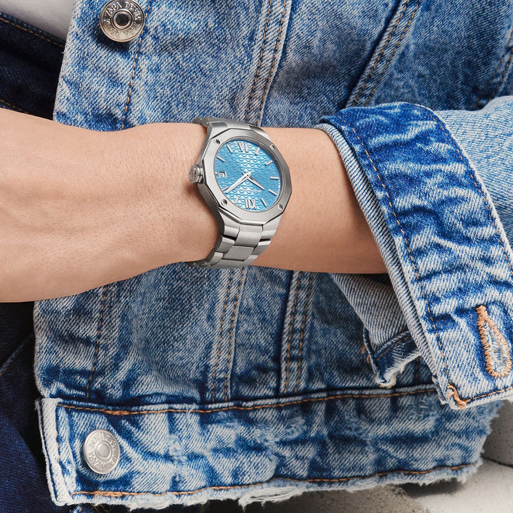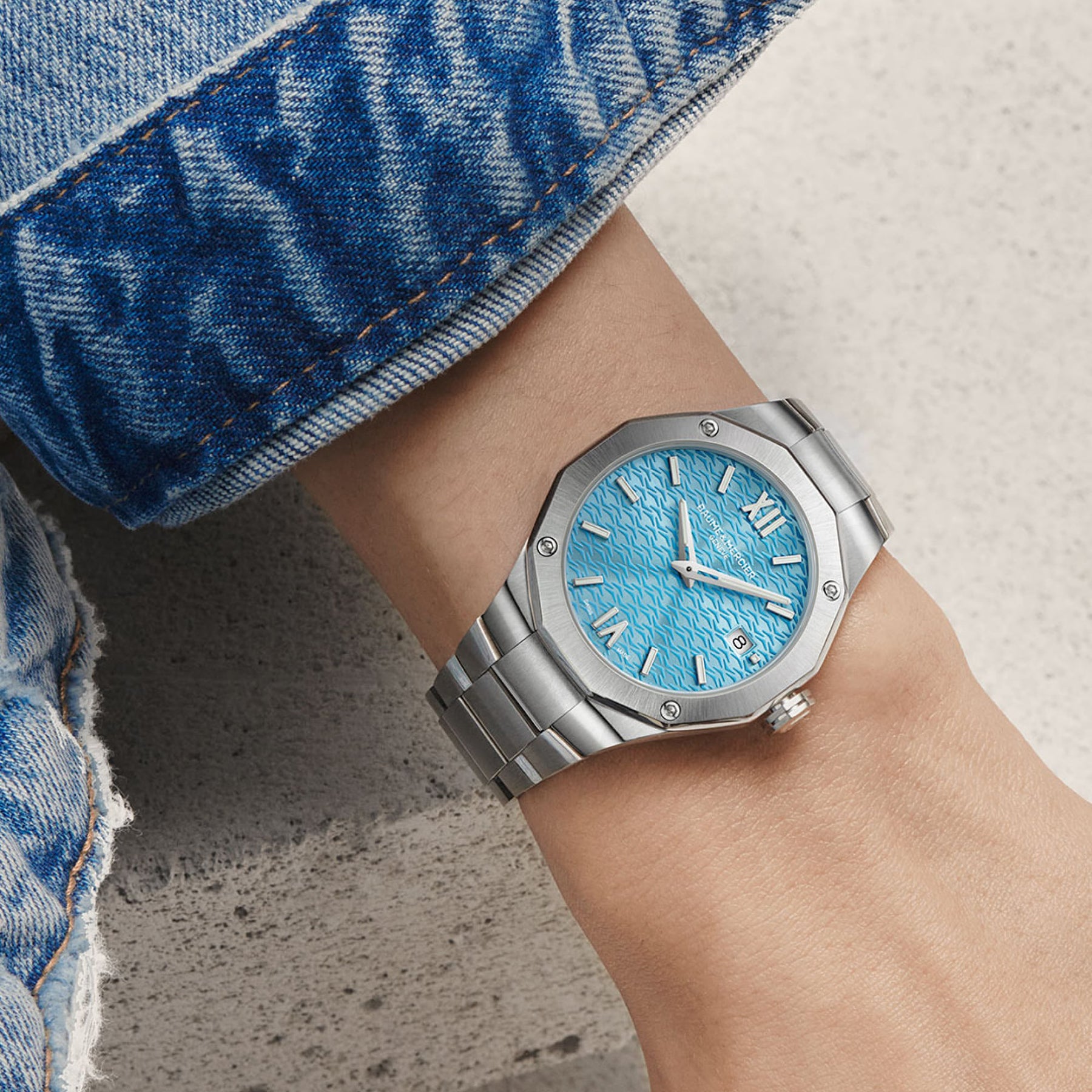 Driven by a "Swiss Made" quartz movement, this Riviera is adorned with an azure blue dial and mounted on a metal bracelet giving a lightful look to this timepiece. Recommended for assertive personalities.