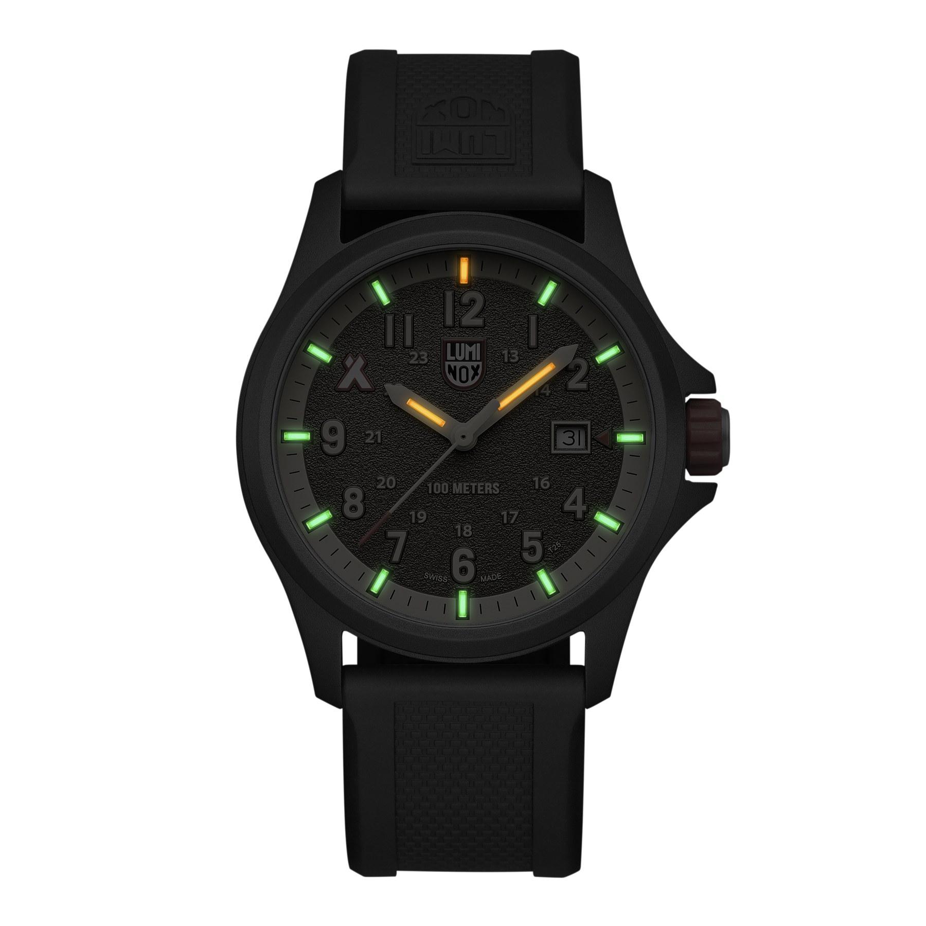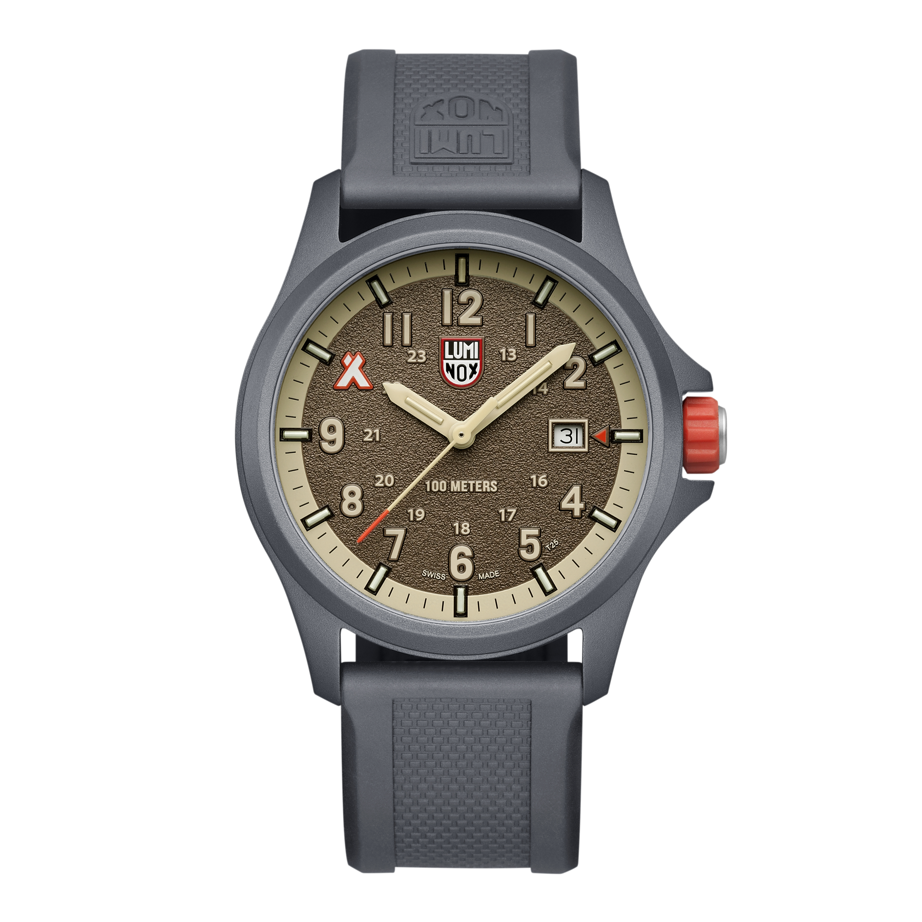 Crafted for long expeditions and inspired by survival legend Bear Grylls, the XB.3716 watch is your ultimate field companion. The sleek 43mm case is made of ultra-lightweight ALUMI-NOX, an aerospace-grade aluminium which offers exceptional strength, anti-corrosion protection, and anti-magnetic precision. The sand-blasted texture of the brown dial boosts readability while a date window offers added functionality. Swiss Made and water-resistant to 100 meters, the watch features a scratch-resistant sapphire crystal, Swiss Quartz movement and the signature Bear Grylls design elements including the orange crown, his iconic logo at 10 o’clock and his Never Give Up mantra engraved on the case back. The Luminox Light Technology with 14 light tubes ensures constant visibility day or night making this a perfect watch for those who love to explore the outdoors.