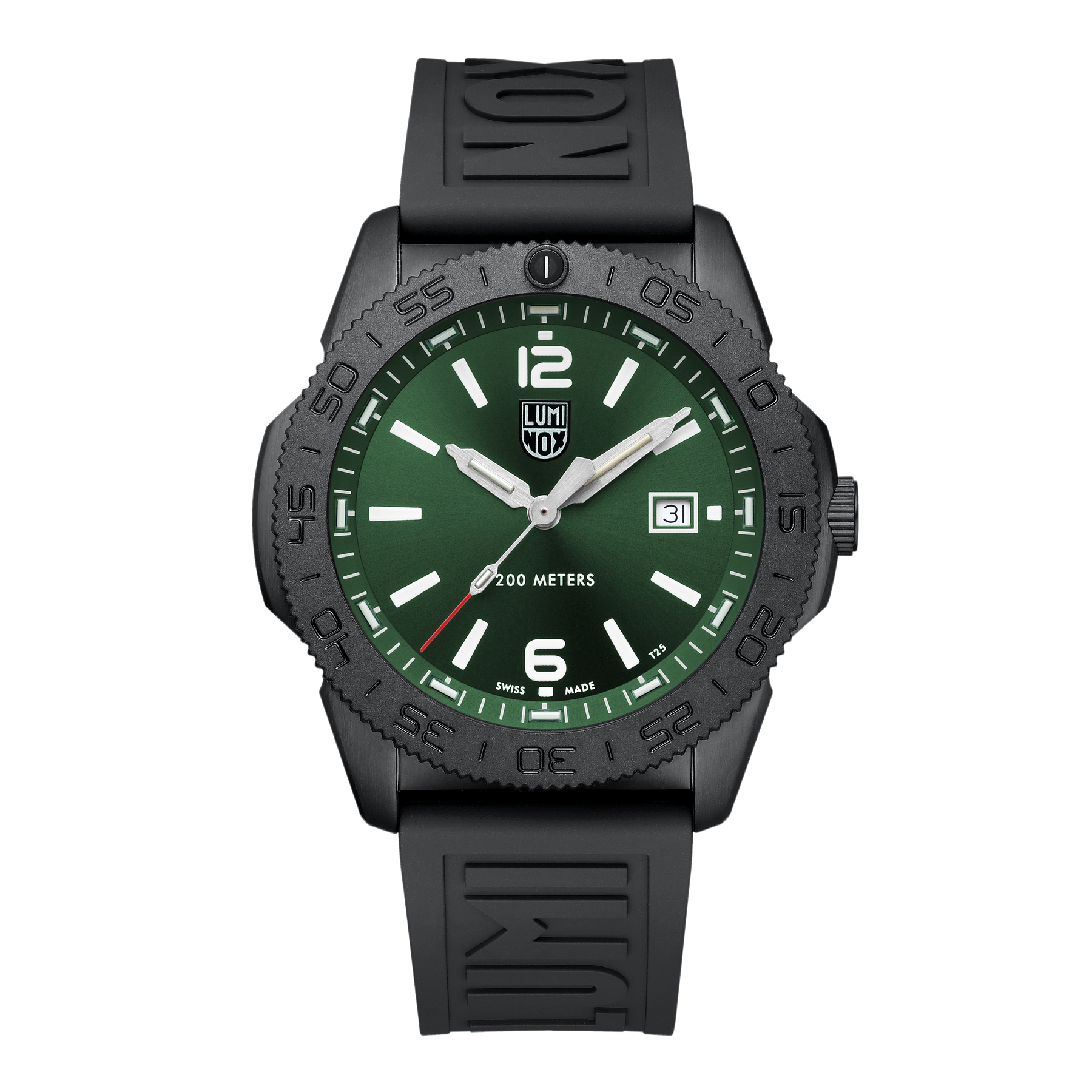 A striking emerald green sunray dial offers a vibrant, high-contrast display that’s as eye-catching as it is functional. Equipped with Luminox Light Technology for a constant glow in low light and total darkness, this watch is always ready for the next mission. The versatile black cut-to-fit strap can be cut to any desired length and is designed to fit all wrist sizes. With 200 meters of water resistance, a screw-down crown, and a sapphire crystal with anti-reflective coating, the Pacific Diver is a trusted companion below and above water.