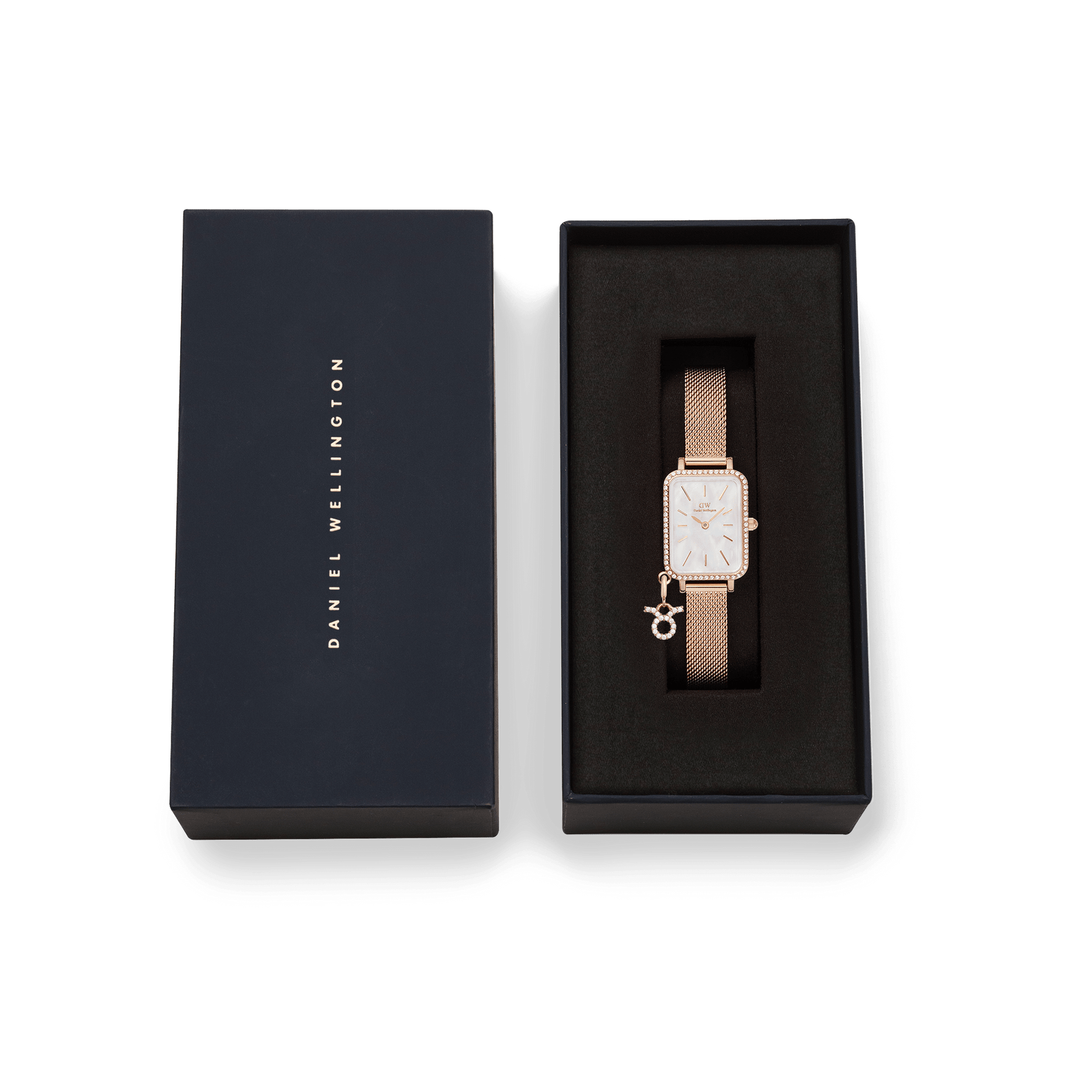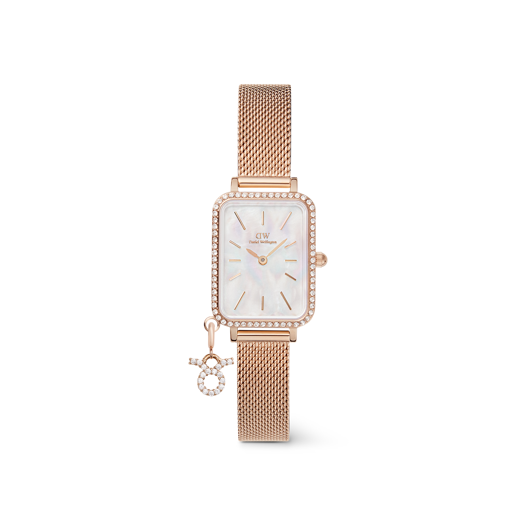 Ambitious Aries, loving Libra, poetic Pisces—add a piece of personality to your outfit with our Quadro Crystal Zodiac watch. Framed by crystals along the Lumine bezel, the real white mother of pearl dial brings a lustrous sparkle to your wrist. Choose your sign and embrace the elements that make you, you—or switch things up to signify another special moment or person: both the rose gold mesh strap and the crystal charm are interchangeable.