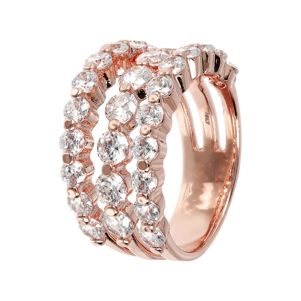 The Bronzallure three-row riviera ring with a prominent sequence of white cubic zirconia, mounted on the 18K rose gold-plated Golden Rose Bronzallure base. A piece that will be central to your collection, a timeless classic luminous with stones carefully designed to maximize comfort.