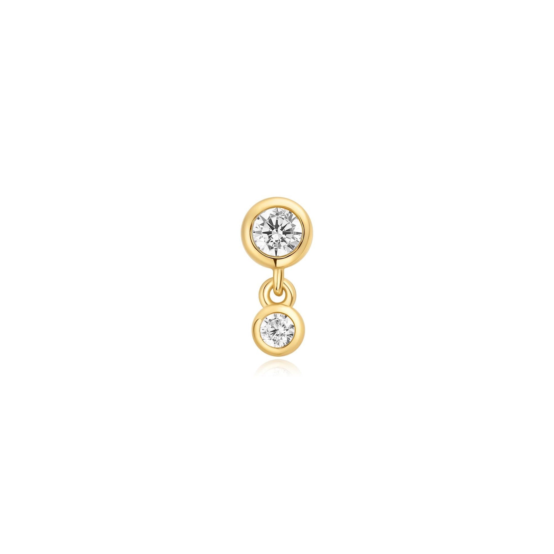 Two sparkly cubic zirconia stones are featured in this sweet dangling stud design, catching the light with every subtle sway. Add a little movement to your everyday earscape with this dainty dazzler - perfect for stacking with other pieces or wearing solo for understated sparkle.